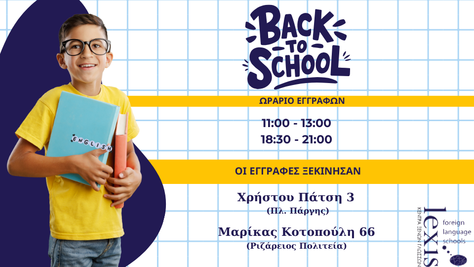 Η νέα σχολική χρονιά πλησιάζει και μαζί της έρχεται μια καινούρια ευκαιρία για μάθηση, πρόοδο και δημιουργία. Στο LEXIS η διδασκαλία των αγγλικών γίνεται εμπειρία: με σύγχρονες μεθόδους, δυναμικό περιβάλλον και καθηγητές που εμπνέουν τους μαθητές να ξεπεράσουν τον εαυτό τους.